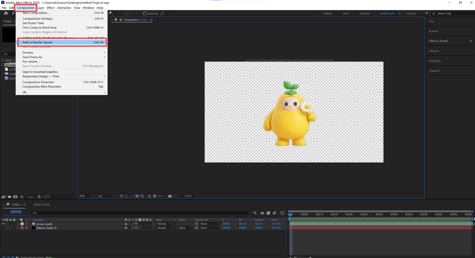 ⚠️ When creating a new composition in After Effects, make sure to set the background color to pure black (RGB 0, 0, 0).